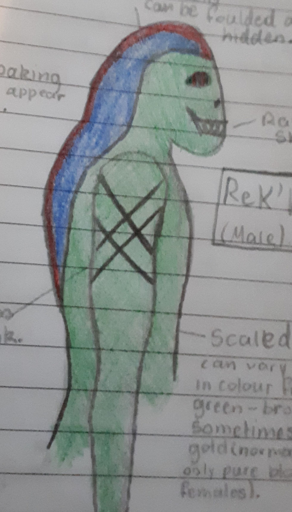 Below is a male Rek'hath, Colour's eye and a basic depiction of Colour. (Sorry for the low quality, I mostly draw in my notebook and make important notes about the subject as I go).