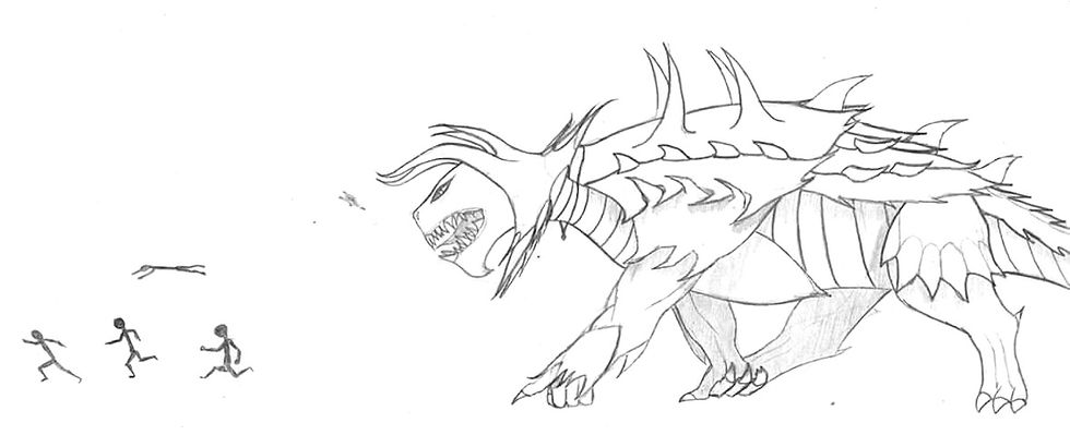 The picture below is a friend's representation of a TPK. A poor party being chased down by the dreaded Torrasque (This is one of the most physically powerful and feared monsters in D&D).
